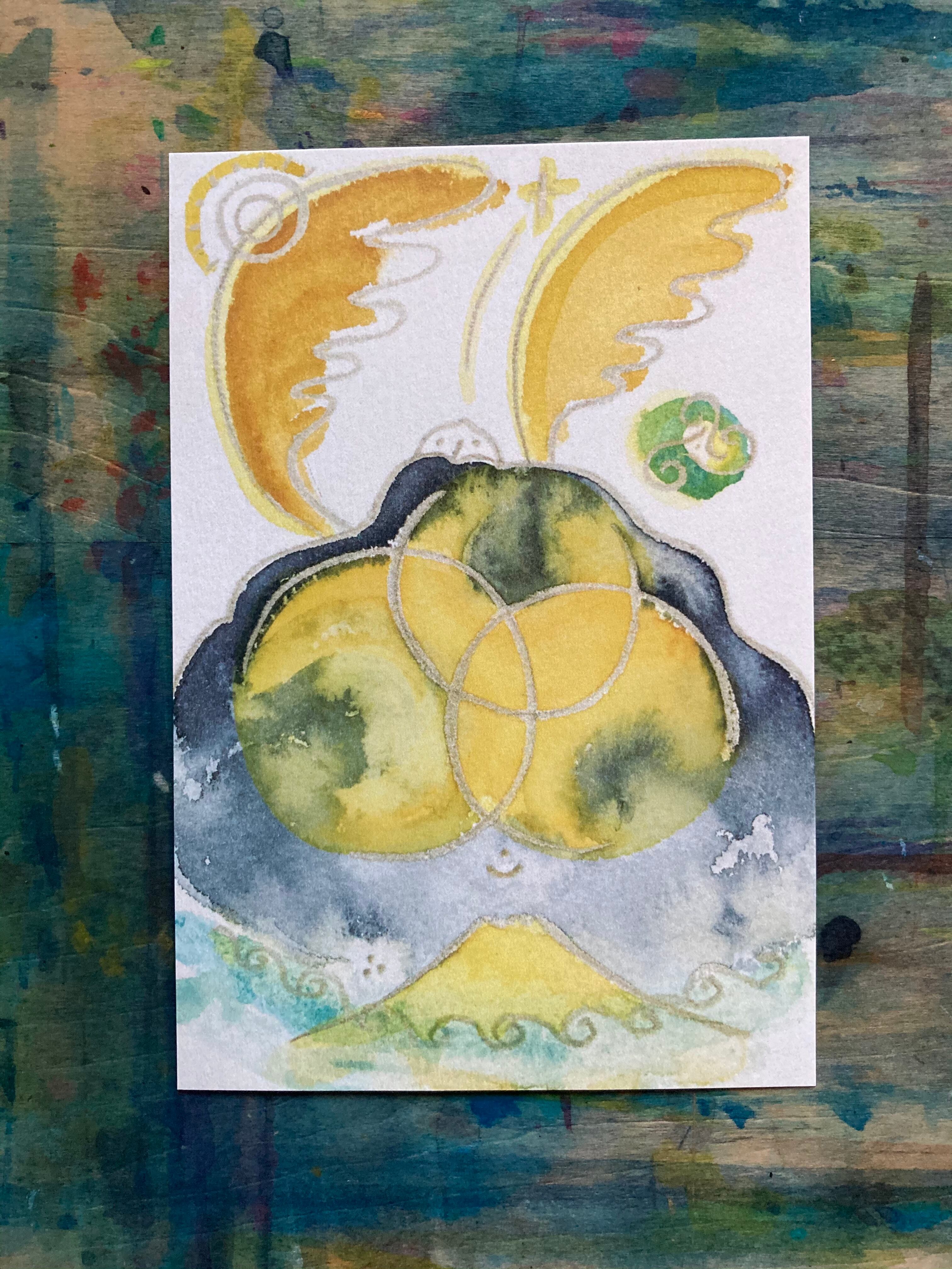 水彩、オイルペンシル、岩絵具、麻炭、他