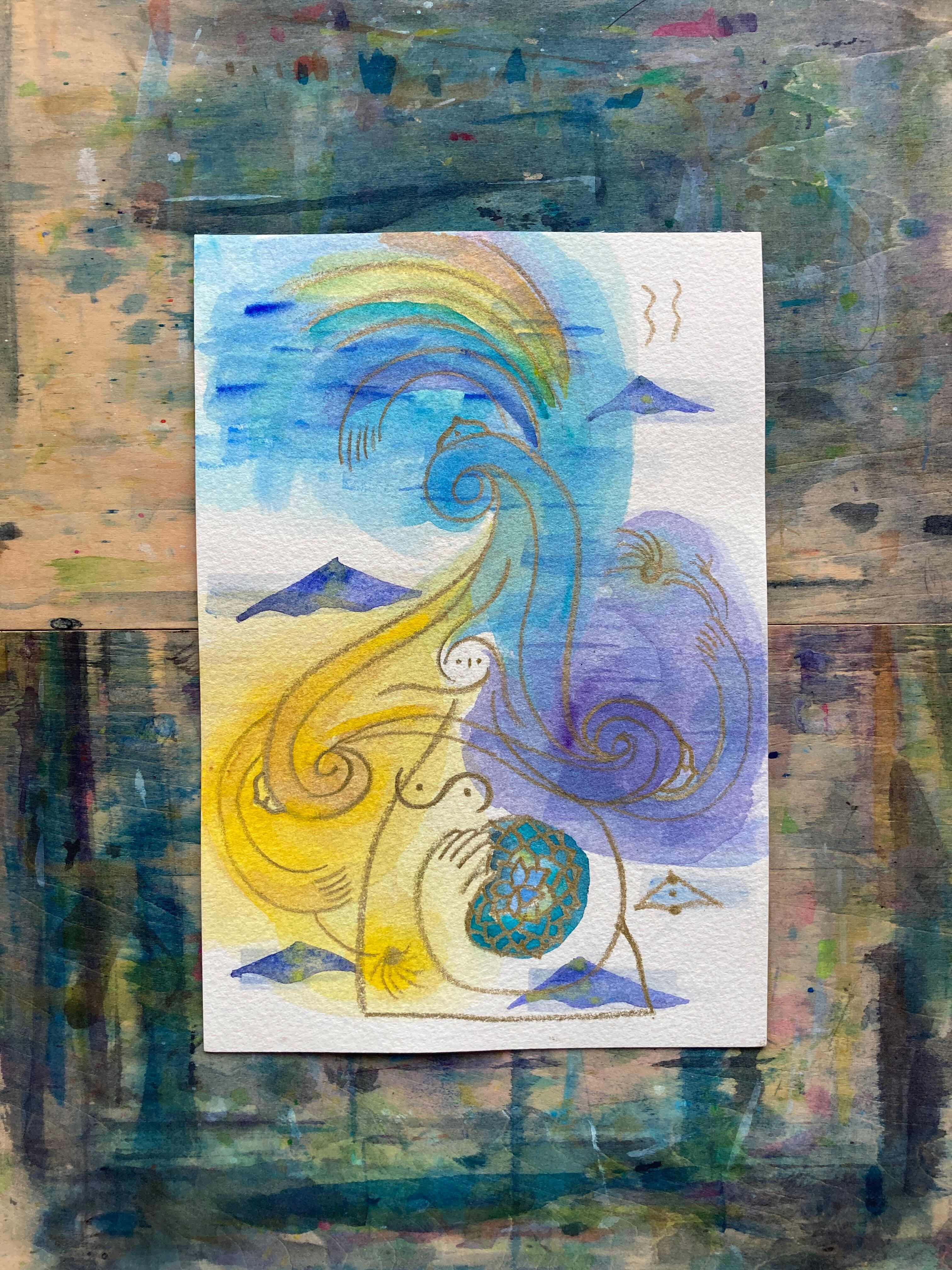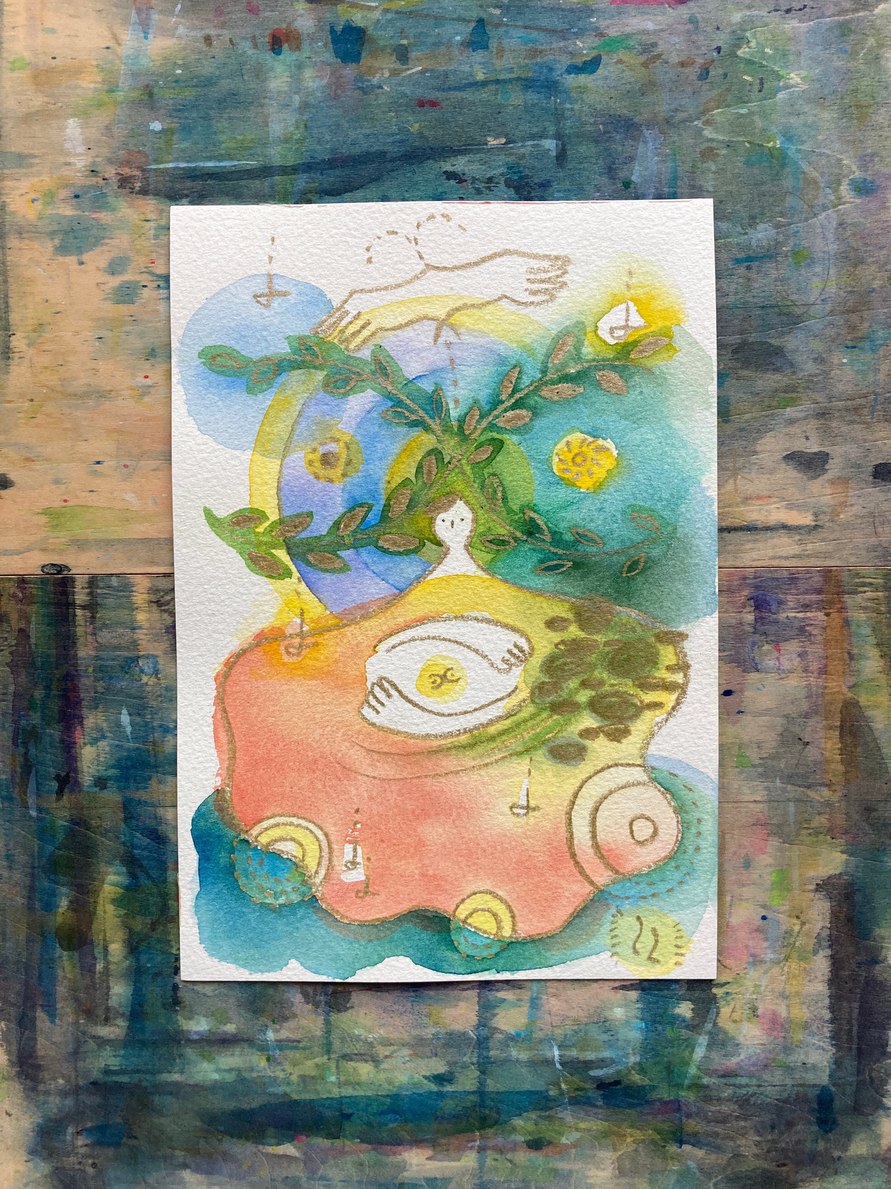 水彩、オイルペンシル、岩絵具、麻炭、他