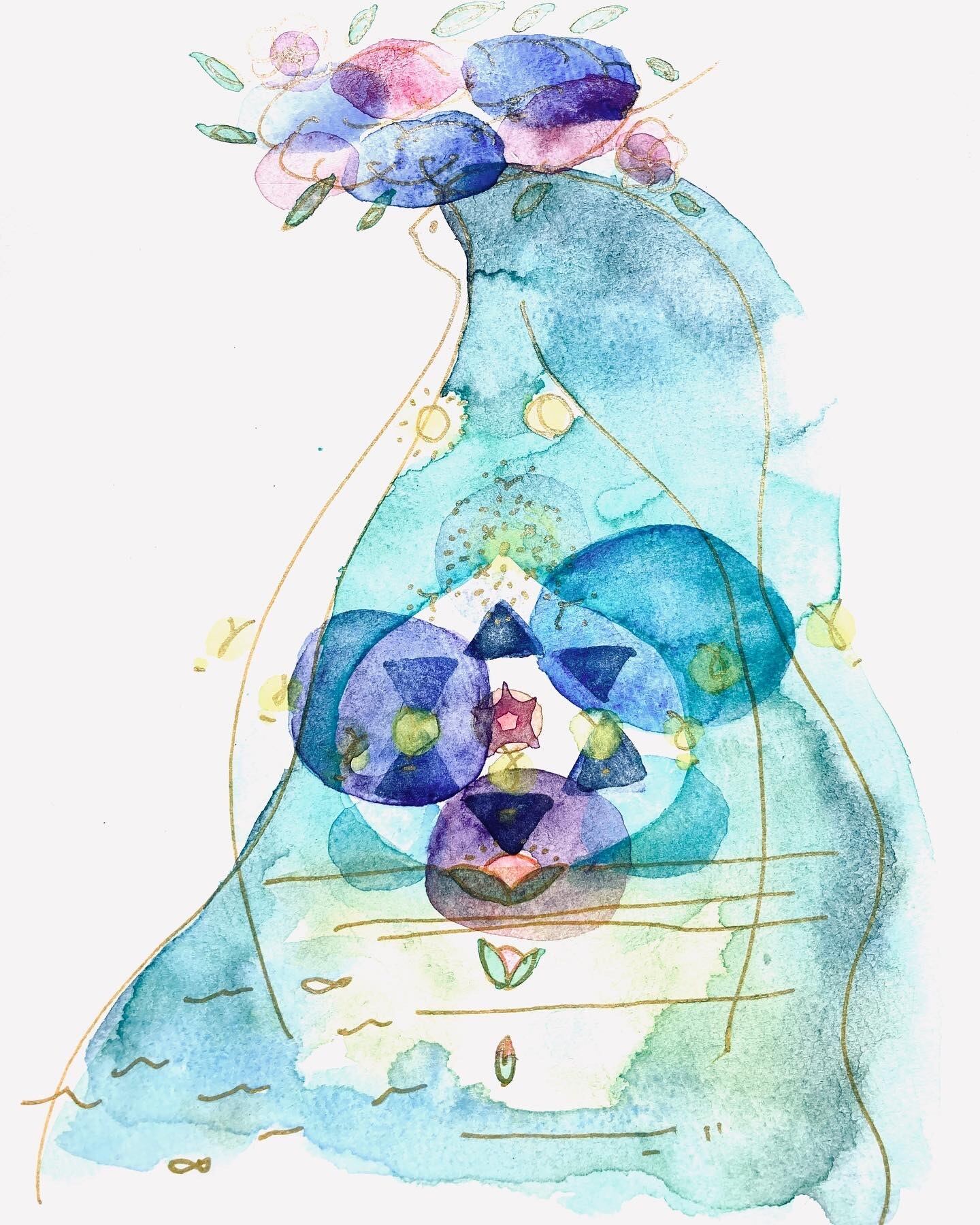 お誕生日・出生時間をうかがい、あなたのこの地球で表現される状態のエレメントイメージを絵に加えるコースもあります(+10000円〜)